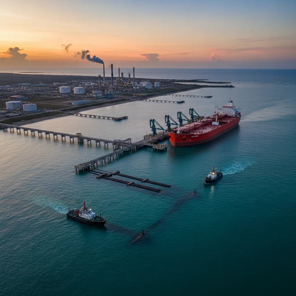 Petroecuador declared force majeure and a 60-day emergency at the Esmeraldas Maritime Terminal after the tanker 'Seaways Wheat' struck a submarine pipeline during diesel discharge on February 8, 2026, caused by adverse weather conditions. The incident disrupts programmed discharges of Premium Diesel, Ron 95 Gasoline, and Diesel Oil — threatening fuel supply to northern Ecuador's coastal and highland regions served by the terminal.